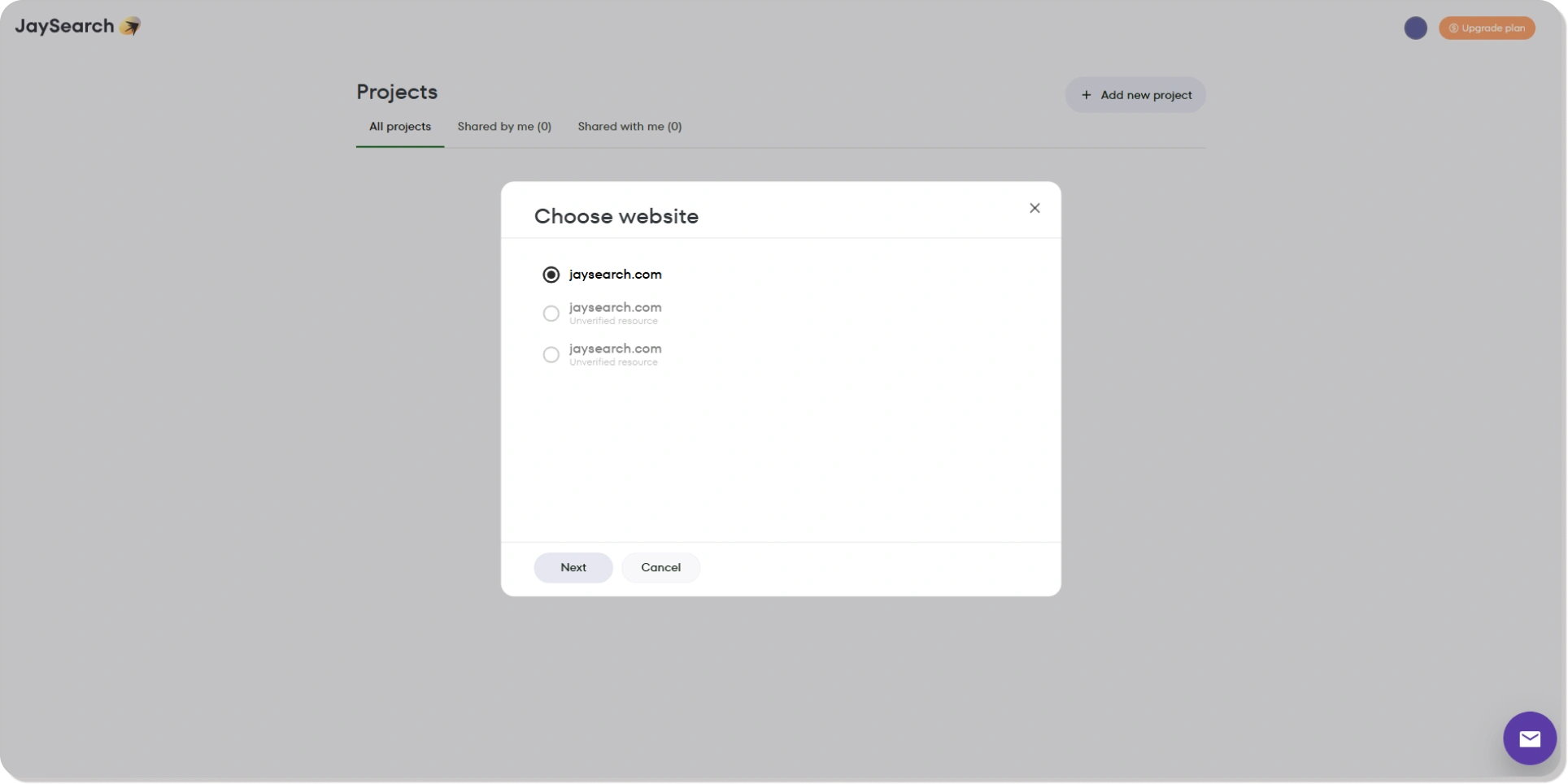 Step 1: To start working with JaySearch, log into your Google Search Console (GSC) account, where the site you plan to track is already verified. Once your GSC account is connected, you can set up your first project.