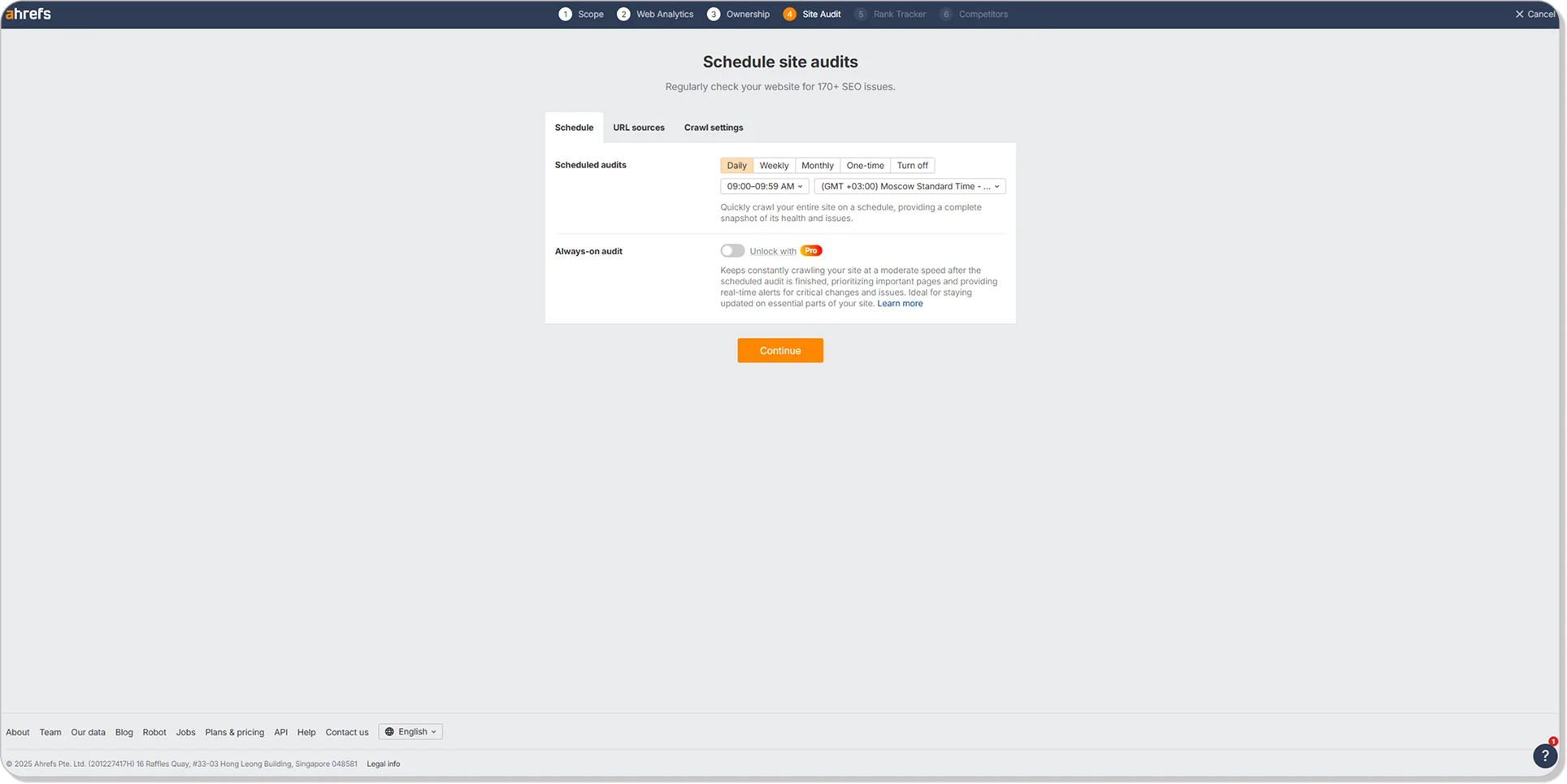 - Scheduled scans: Many SEO monitoring tools have an automated scan feature, but Ahrefs lets you set the schedule.