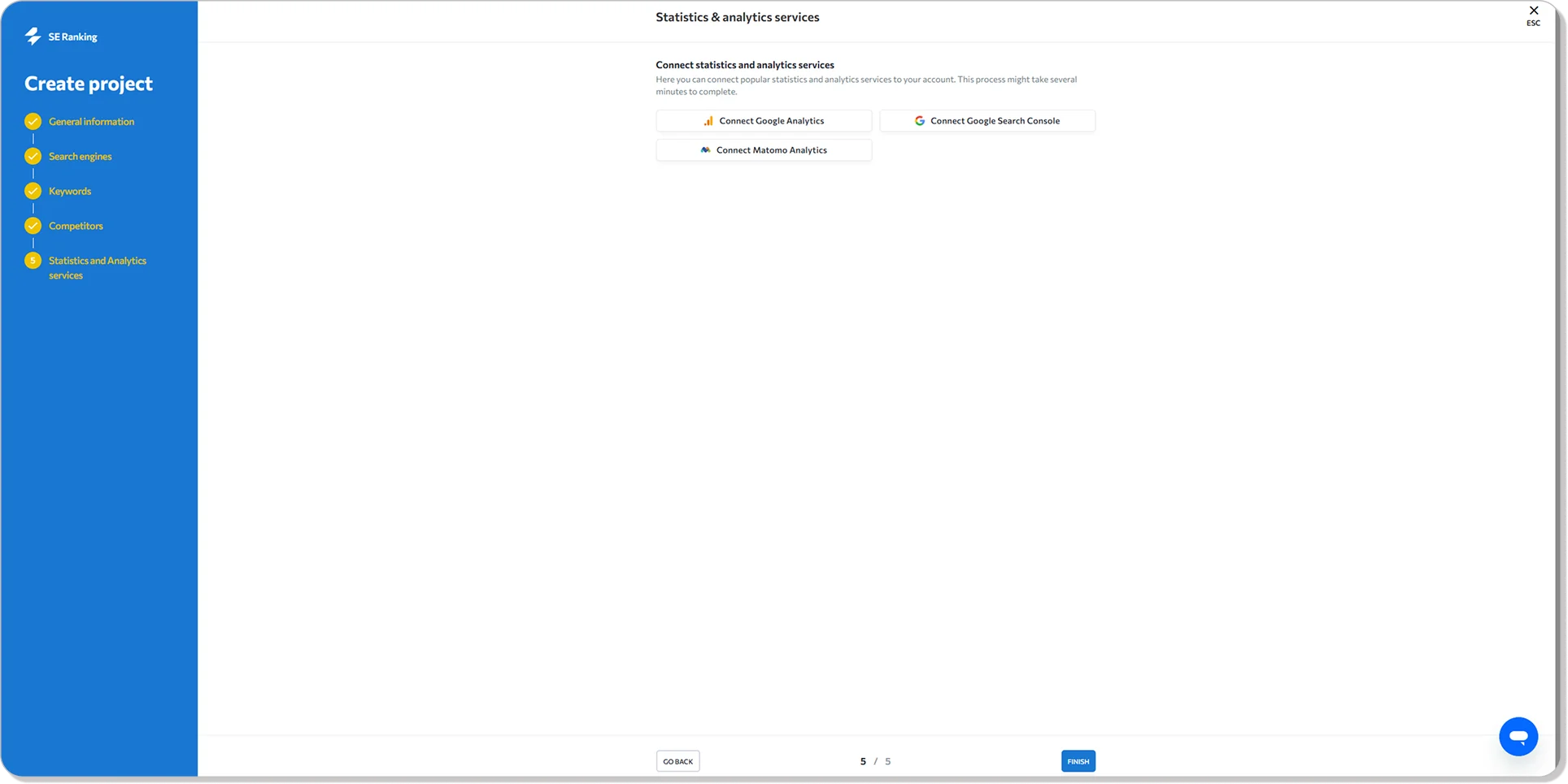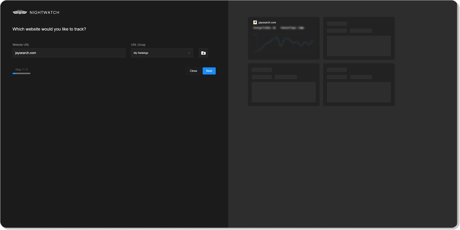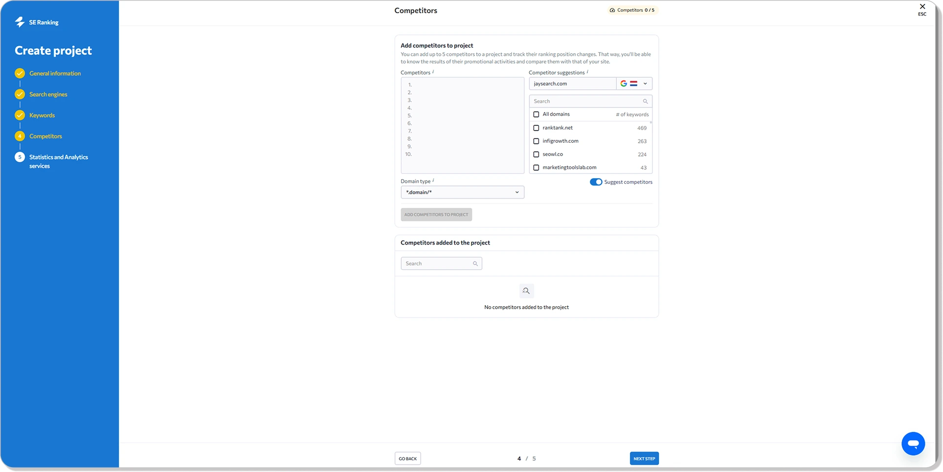 Hit Add new project and select the website you want to track from the list. Then click Next to continue.
