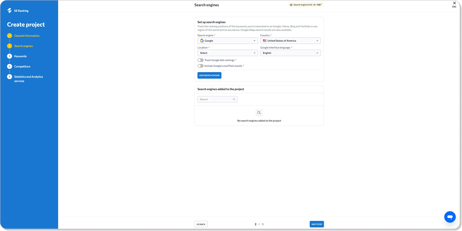 - Tracks all major search engines: Ranktracker provides information about Bing and Yahoo search results.